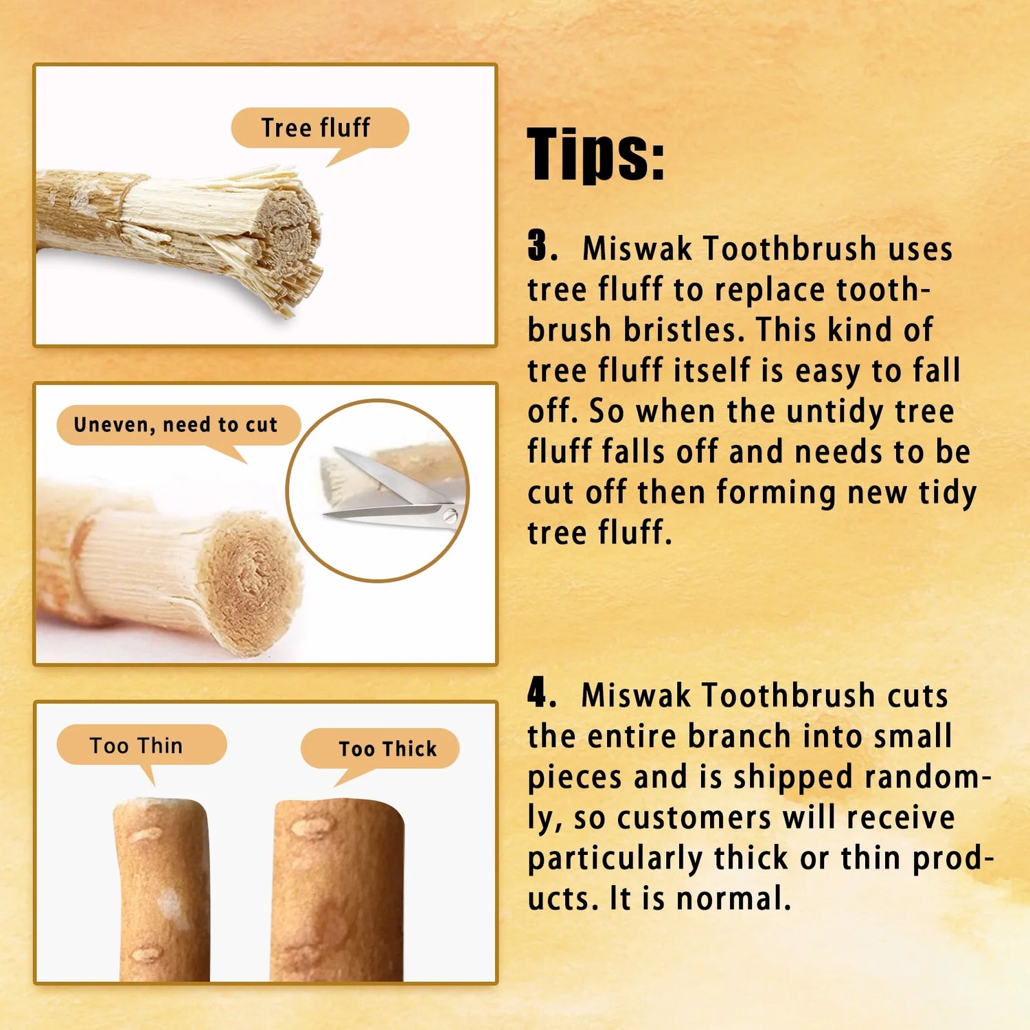 - 【Natural Miswak Toothbrush】: Miswak, also known as Sewak or Peelu, is a natural tooth cleaning twig that is made from the Salvadora Persica tree. Miswak Stick has long been used as a traditional and effective oral hygiene tool.
